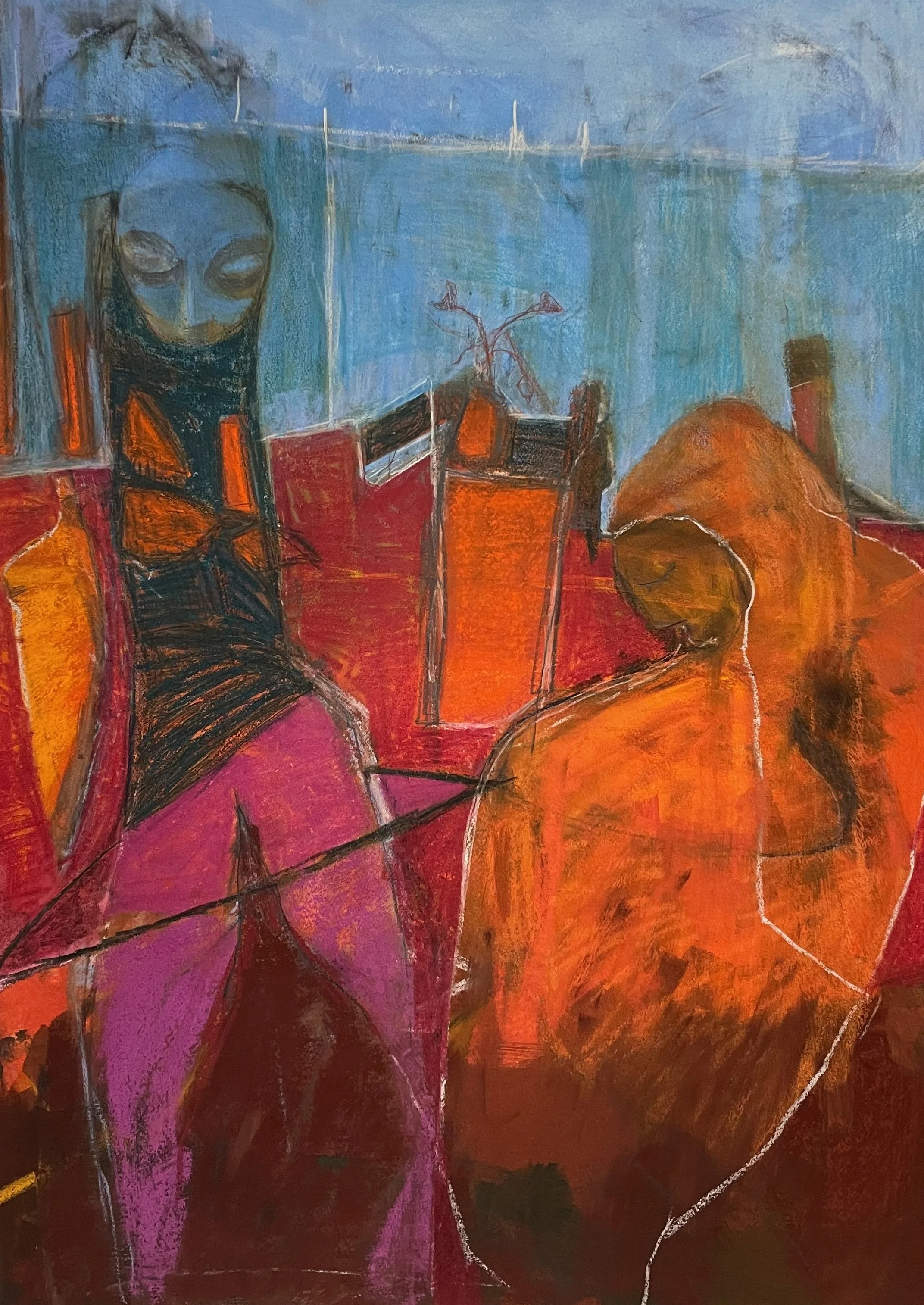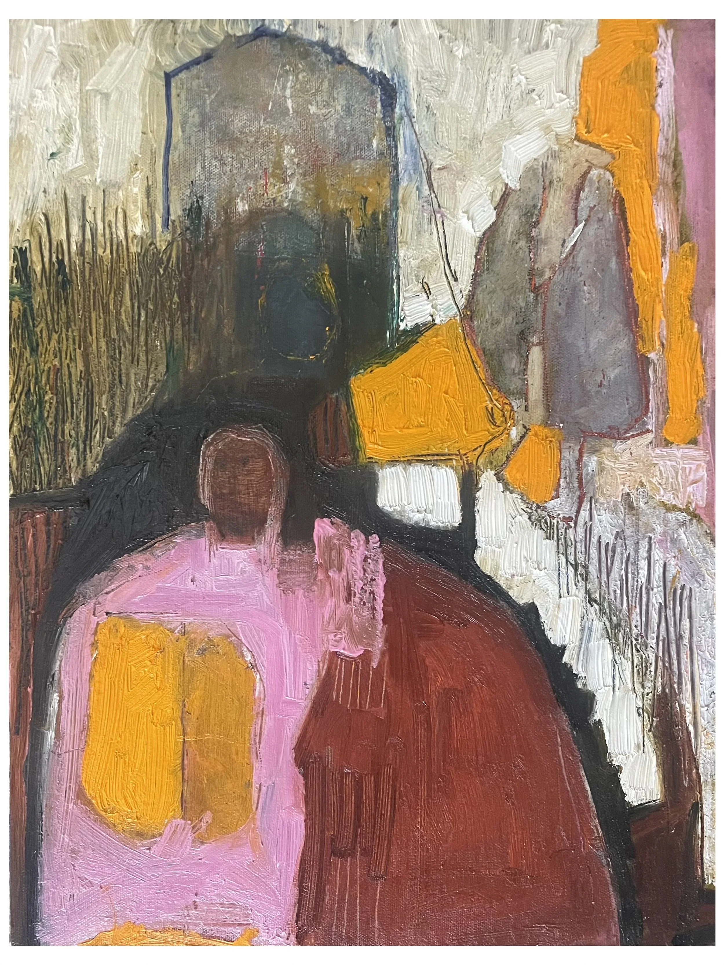 Figurative abstract paintings in oil and mixed media drawings on paper.