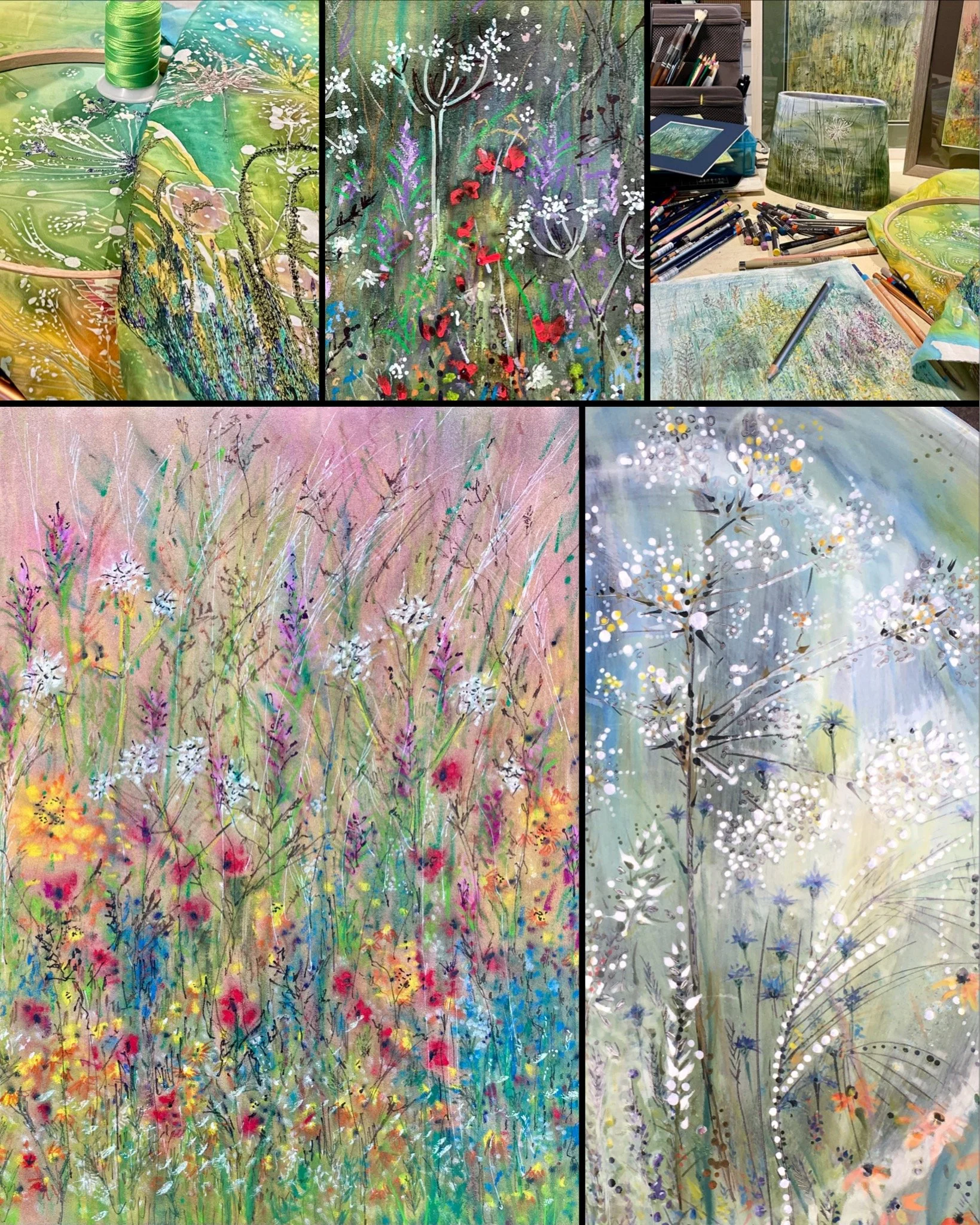 Multiple media drawing/paintings, ceramics and textiles inspired by nature.