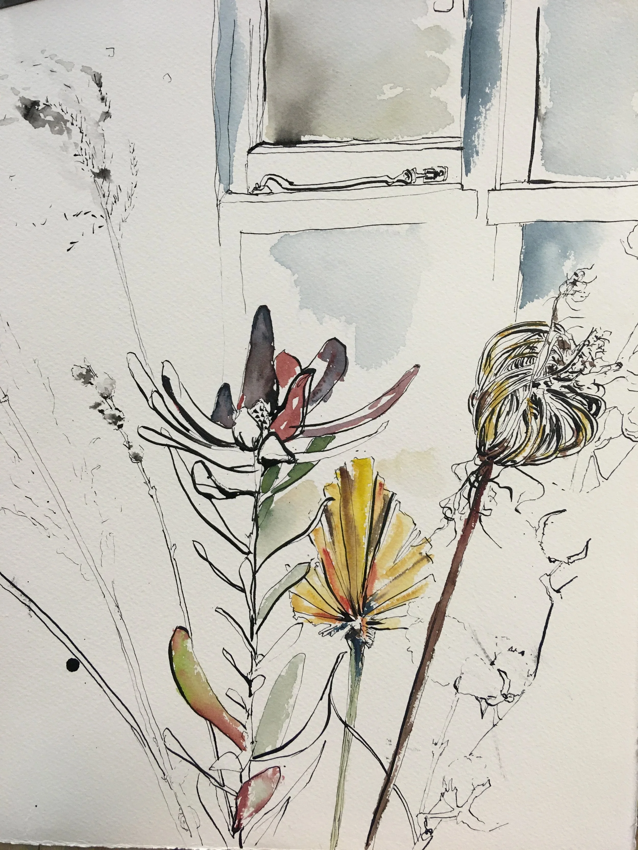 Ink and watercolour works. Figurative and still life.